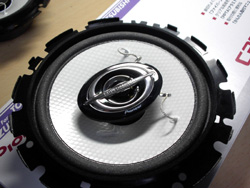 重低音が効く曲で、ちょいと音量を上げただけでついてこない純正スピーカー。13年も使えば仕方ないってところでしょうか。 スピーカーはカロッツェリアのTS-F160。 オーディオを極めるつもりは無いので廉価版で十分満足。 巷のカーショップより格段に安かったのでネット通販で購入しました。