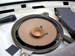 適当にフィッティングキット買ってきての無理やりの装着です--; まぁそれでも低音は純正よりキッチリ出るし、高音も綺麗に出るようになりました。