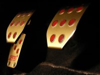 ヒール&トゥーがやり易いようにアクセルペダルの角度が変えられるようになっています。たしかに純正ペダルよりやりやすい。 ただ一つ問題があるのは雨の日。靴底が濡れてると滑ってむちゃくちゃ危険!滑り止めの赤ポッチはまるで意味がなく、何度クラッチを踏むときに足を滑らせてガクガクさせたことか…